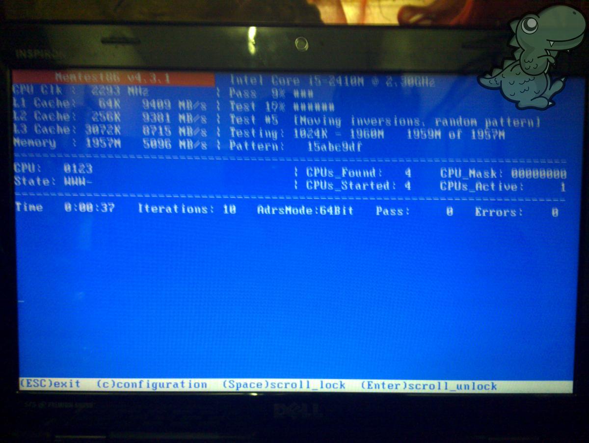 Baru2 ni.. datang satu lagi laptop.. laptop dell lak.. kali ni katanya OS dah xbetul.. blue screen je memanjang.. memang kena format je la jawabnya.. tapi mcm mana pun kita test dulu hardware.. sebab kebanyakan sekarang ni.. hardware diorang ni selalu gak masalah.. so start dgn RAM dulu.. gambar bawah ni la gambar dok test RAM dia..