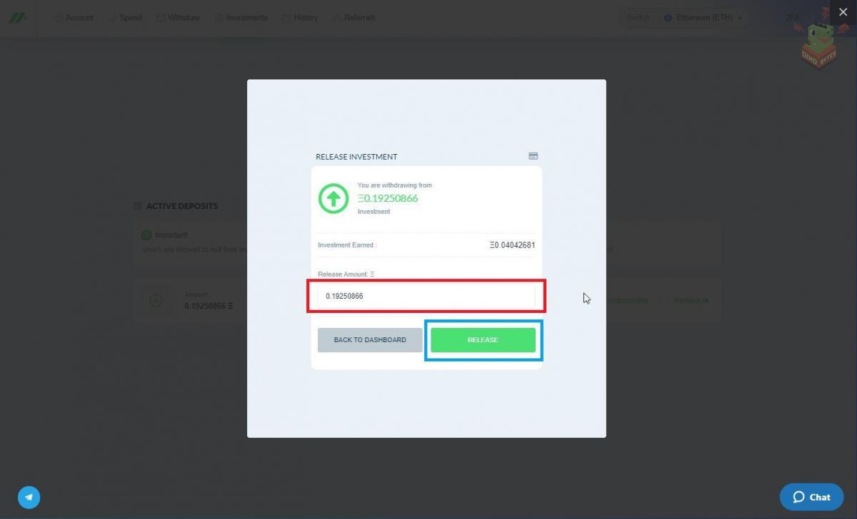Note : Sekiranya anda hanya ingin keluarkan sebahagian sahaja dari investment anda.. masukkan sebahagian nilai sahaja.. sekiranya ingin keluarkan kesemuanya.. masukkan kesemua nilai coin yg anda invest pada program