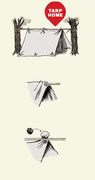 Apabila terdesak khemah mudah boleh dibuat dengan cepat seperti gambar ini.