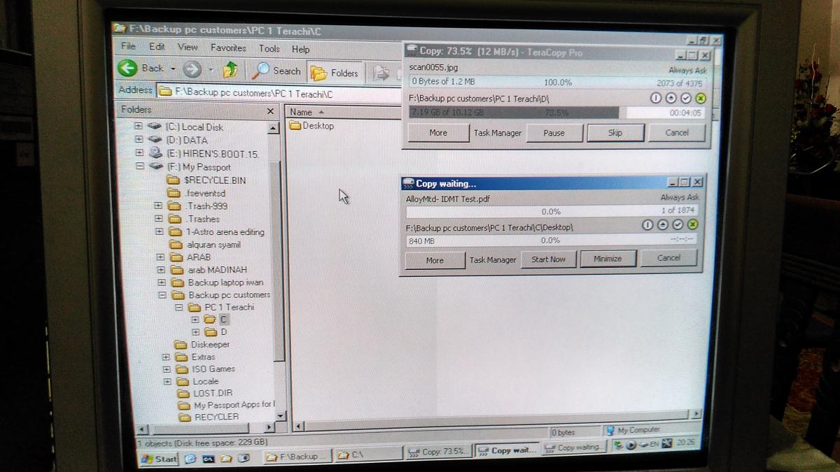 Nampak RAM ok.. tapi xcukup utk masuk WinXP.. ok maybe ada yg kata.. "awat lak xleh requirement utk WinXP ckp RAM xyah besar2 pun.. memang le~.. nak run WinXP memang xyah banyak RAM.. tapi tanya diri sendiri.. kita pakai PC tu nak run WinXP je ke or program yg run atas WinXP.. nak run WinXP idup la.. kalau nak run program yg lain cth antivirus ke.. office ke.. excel.. dan lain2.. boleh ke idupnya~.. so bagi tahu tuannya PC.. nak upgrade x.. kalau xmo.. jln je.. tapi kalau slow later.. jgn salahkan saya.. wahwahwahhhh.. tuannya PC kata upgrade je la.. sonang.. so tambah la jadikan 2GB.. lepas dah tambah sebelum format kita backup dulu.. gambar dok backup ada kat bawah ni..